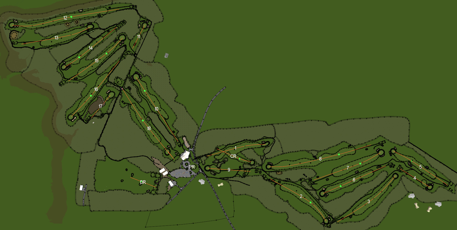 Setbacks included a few false starts on figuring out what do to about the greens and having to redo most of the shapes on the back nine after completing them once with a lower resolution LiDAR import. This contributed to a crunch in the last two weeks to finish on time. Working every available hour after work and weekends plus taking a few days off work I was able to get pretty much everything I wanted into it.