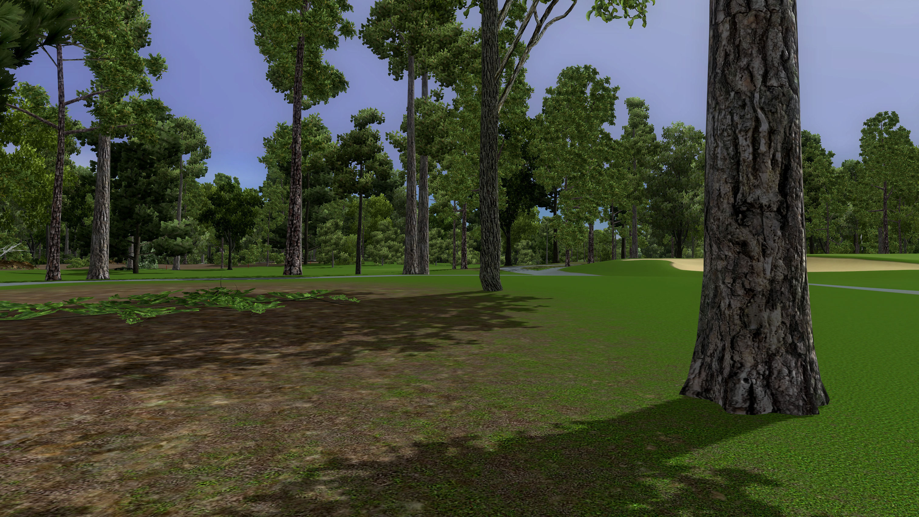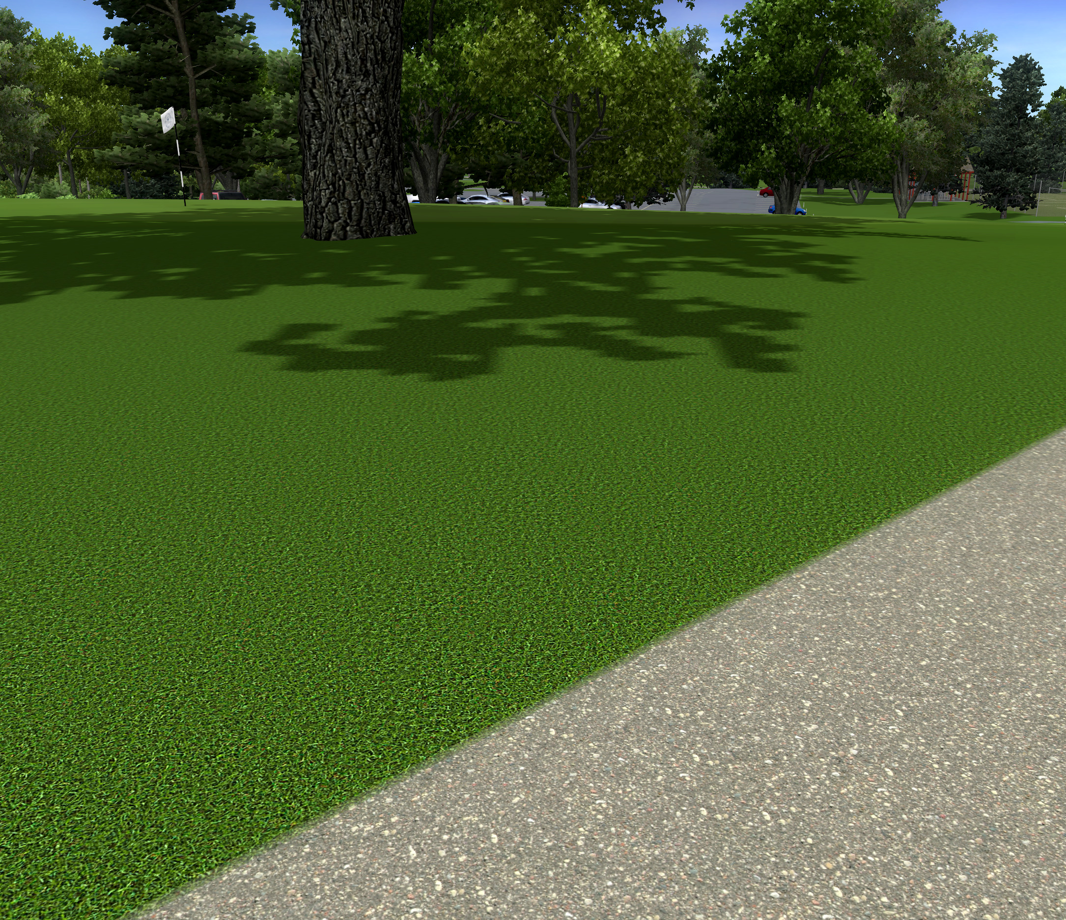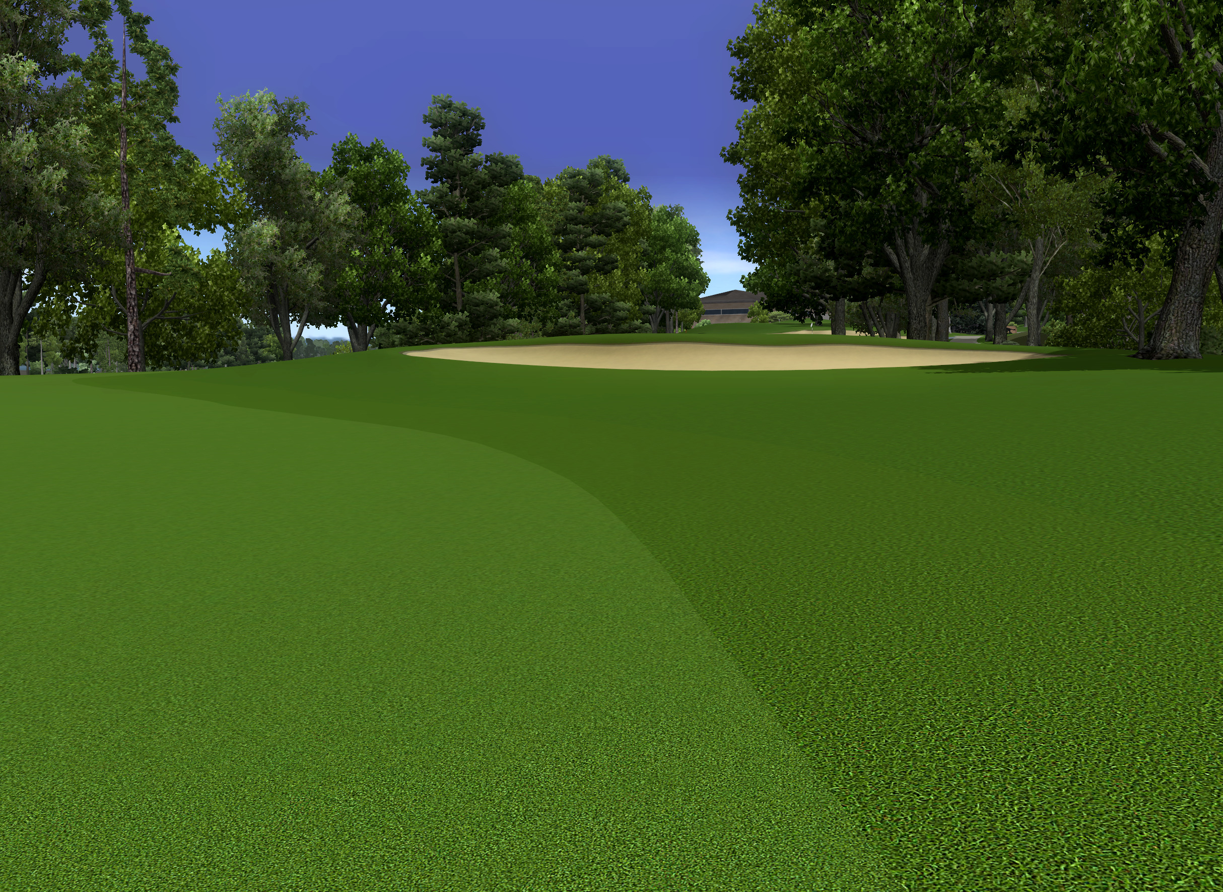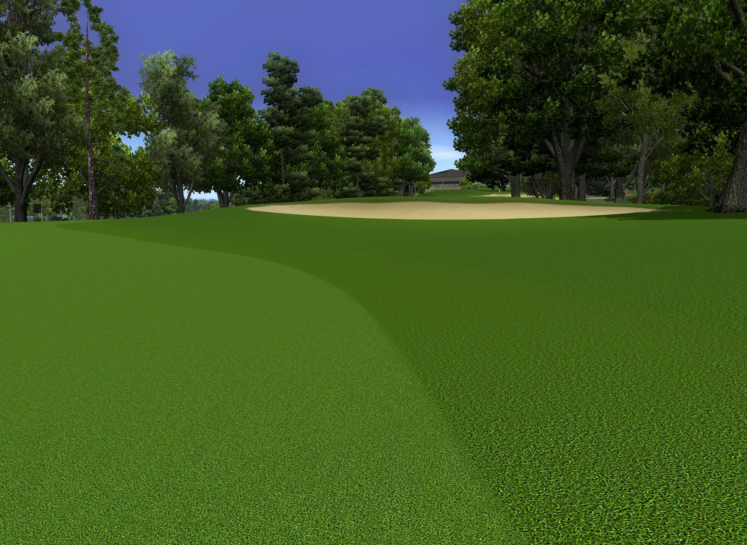 I use MASK 52.tga for blends on cart paths, roads or other paved areas in the rough. If the path crosses the fairway or first cut I suggest trying MASK 51.tga in those areas for a sharper edge. I do not know what looks best in this case though as this situation has not come up for me in a course design yet. You can again use MASK 79.tga in place of either if you prefer to simplify things and use just one blend for all grass cuts.