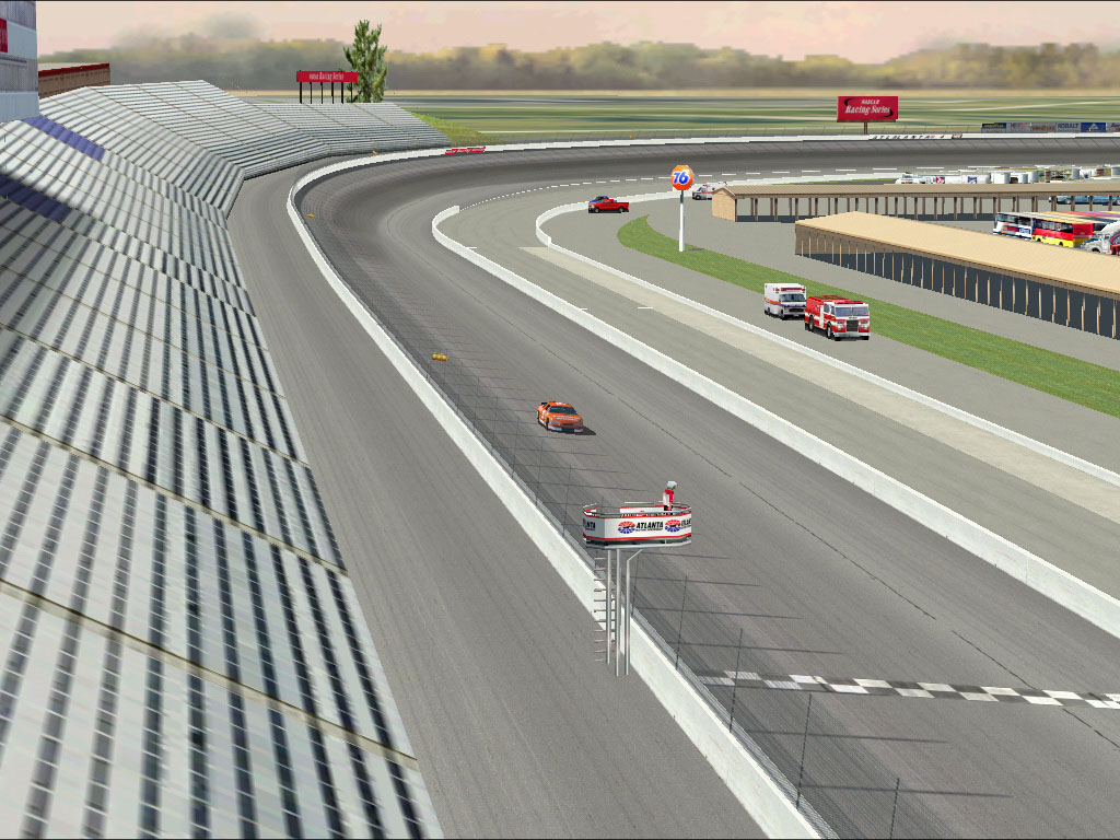 This is my recreation of the old 1.522 mile configuration of the Atlanta Motor Speedway. The last race on the old configuration was held in the spring of 1997. More info about the track is available at the Atlanta Motor Speedway Website.