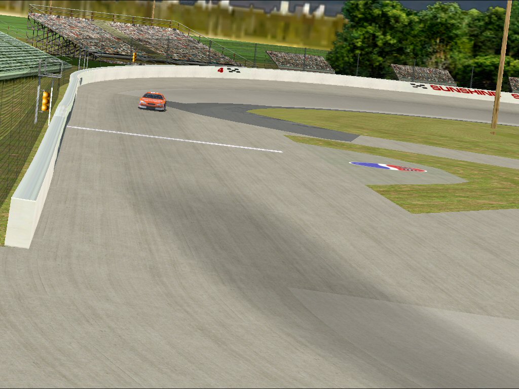 We've tried to accurately re-create the look and feel of the track, as it looked in 2004, for your enjoyment in NASCAR Racing 2003. If you wonder about the billboards only covering half the backstretch; there were a lot more billboards on the backstretch in 2003, but the other half blew down in a big thunderstorm.
